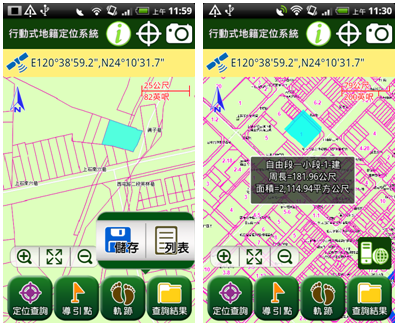 Supporting mobile devices with Android 2.3 or higher version and enhancing query function, the newest Mobile Cadastral GIS 3.1 enables users to query cadastral data and obtain perimeter and area information of the district simultaneously. Therefore, users can recognize the cadastral data more completely. Additionally, field surveyors are able to save query results of cadastral data and export the result as text file (TXT) for data for further application.