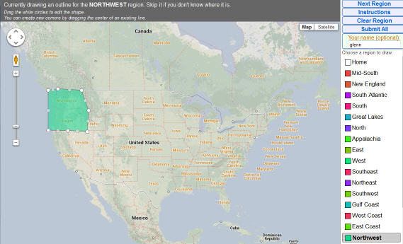 How do you define the Northwest or the Rockies regions of America? Enter The Regional Differences Project – a cool project that lets users enter their definition of regions in an effort to crowd source regional differences and define the spatial makeup of the land… pretty cool!