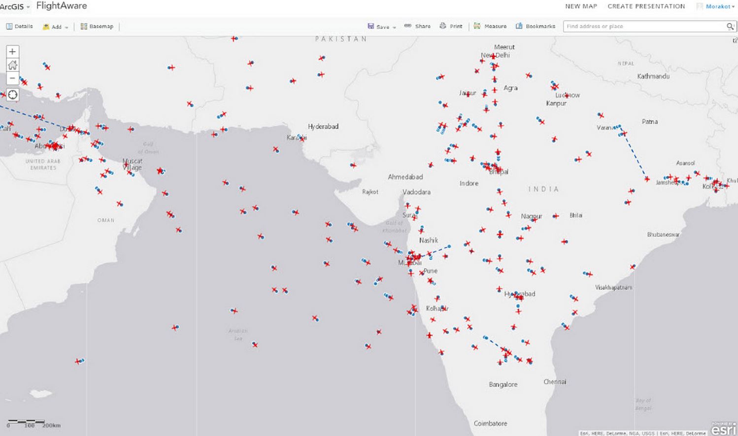 Redlands, California—August 17, 2015—Esri and FlightAware have partnered to combine the power of the world’s leading flight tracking and status company with the world’s leading ArcGIS mapping platform. The partnership features the ability to view and analyze large amounts of accurate, live-aviation data in one powerful spatial system.