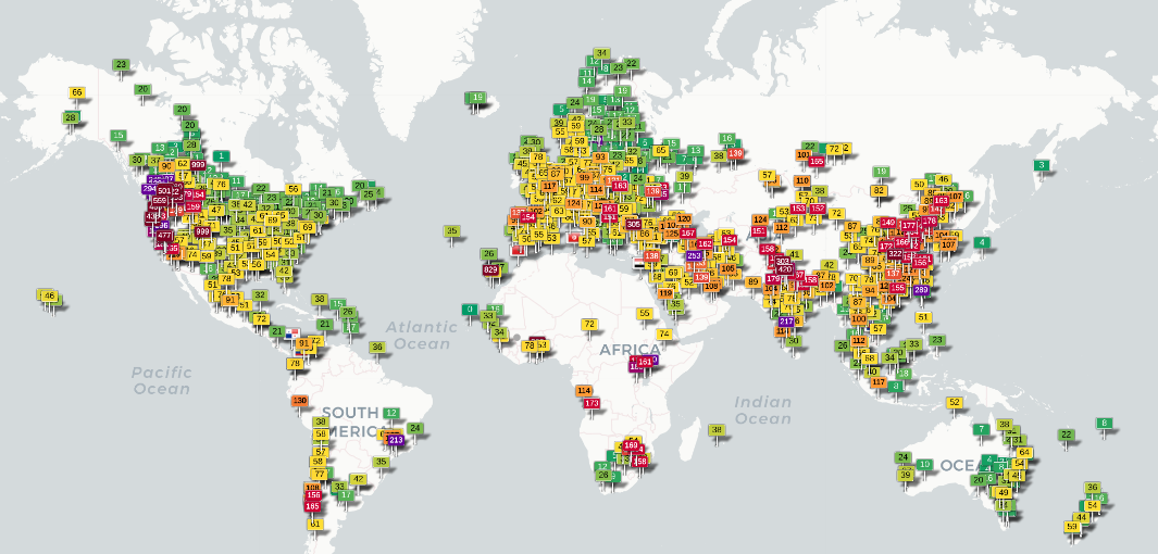 To use the service, simply search for a location or zoom to a specific region on the map. Clicking on a flag icon will then reveal data from the latest reading.