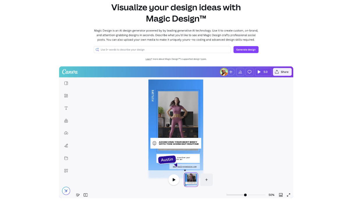 It’s a great pick for marketers, educators, or content creators who care about design but don’t have time to start from scratch. You get access to Canva’s huge asset library and can collaborate with teammates in real time.