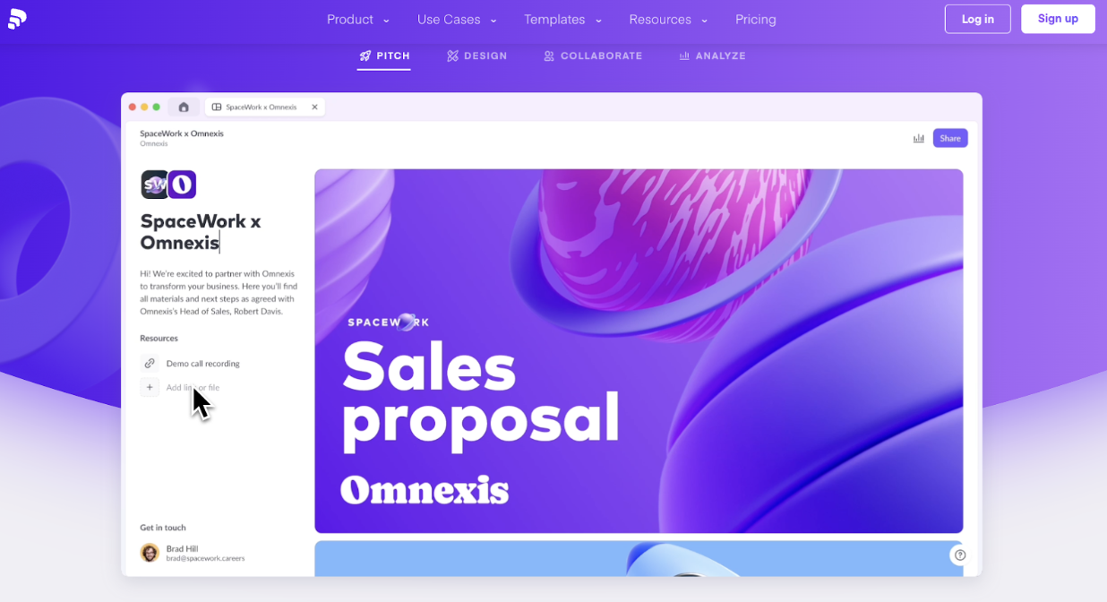 Pitch offers a refined experience for collaborative teams. It focuses on streamlined teamwork, fast iteration, and presentations that look great even if you’re not a designer. Templates are professional and modern, while features like live collaboration, slide analytics, and video embedding make it stand out.